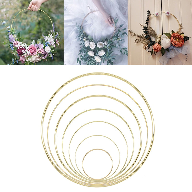 1Pcs 10-40cm Iron Gold Metal Ring Portable Garland Baby Shower Wedding Bride Flowers Wreath Handmade Flowers Catcher Hoop Decor